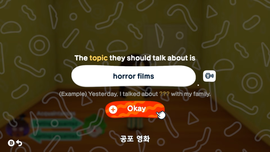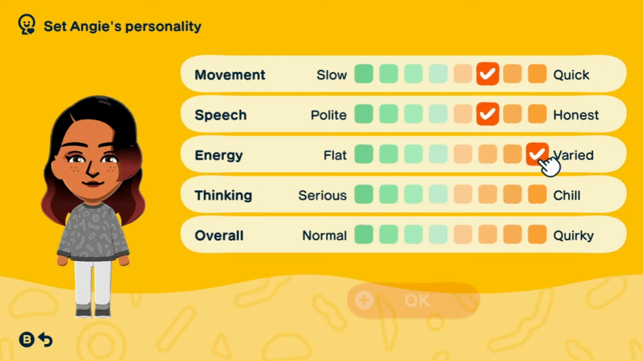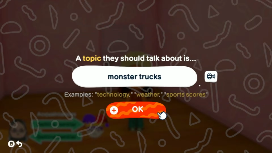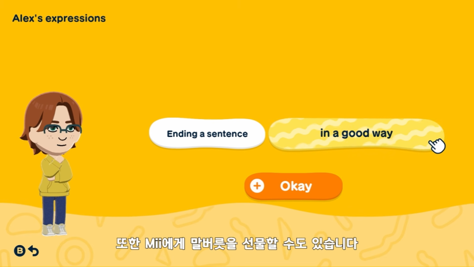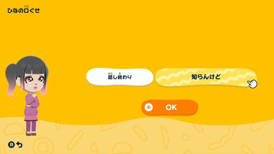 이전작에선 말버릇을 하나의 문장으로만 설정할 수 있었는데, 이번 작에선 동물의 숲 시리즈처럼 일반적으로 출력되는 문장 맨끝에 단어 몇 개 추가하는 정도로만 설정할 수 있는 듯하다.