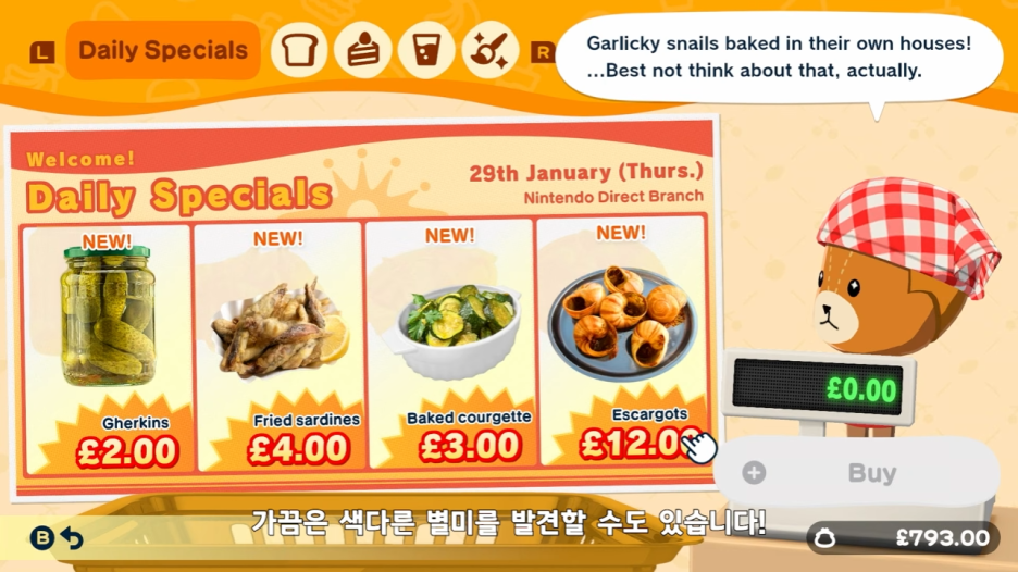 아무래도 이번작 아일랜드에서는 국가코드가 없는 스위치 버전으로 제작되어 국가별 버전마다 음식 종류의 차이가 없을 것으로 보인다.