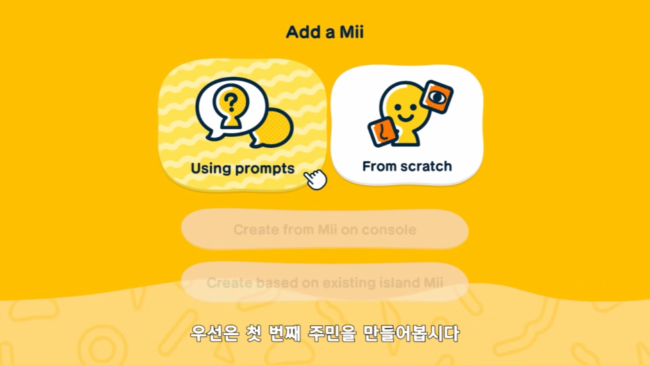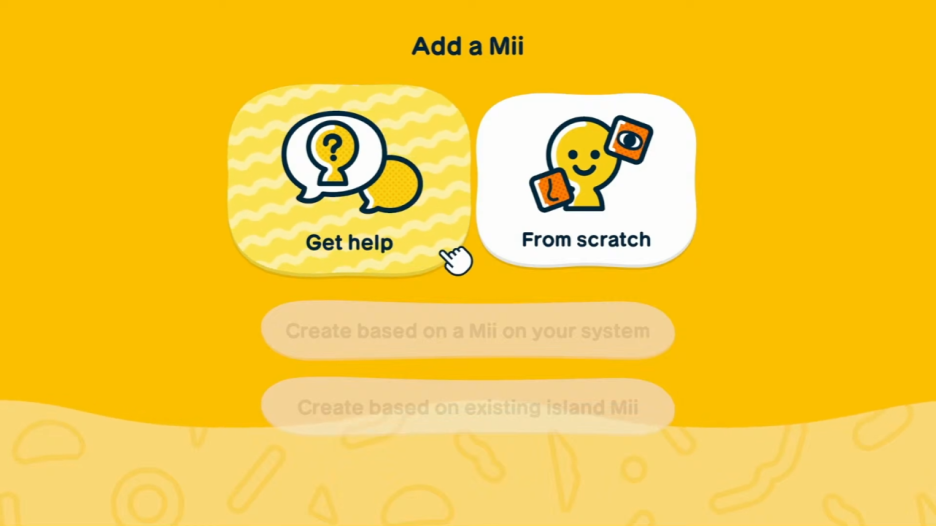 이번에 Mii 생성 시 '질문을 통해 만들기' 라는 신기능으로 스무고개에 대답하는 방식으로 만드는 방법이 추가됐다.