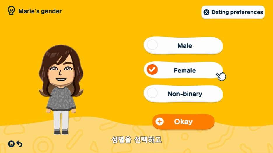 그래도 다행인 점은 내가 원했던 대로 Mii의 제3의 성별이랑 성지향성 설정 기능이 생겼다!! 만쉐이 ㅋㅋㅋ