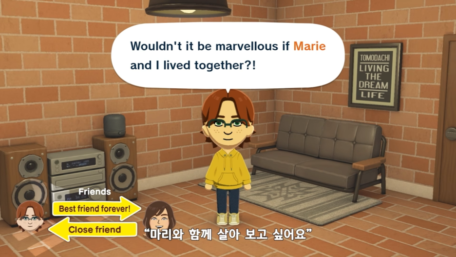 전작인 아파트에선 Mii 프로필 적으려면 본명 성씨 따로 이름 따로 닉네임 따로 적어야됐는데 이젠 그냥 '이름 하나'만 적는 게 끝인 듯하다.