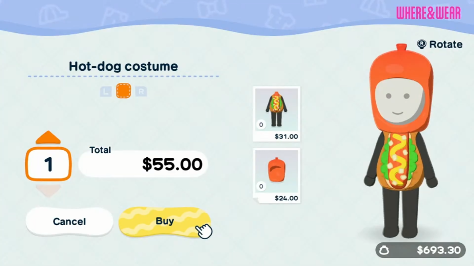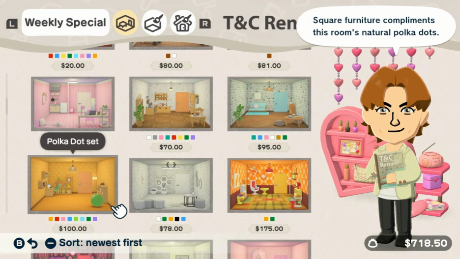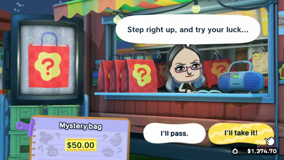 두 번째로 옷가게이다. 여기서 구매한 의상을 Mii에게 선물해서 꾸며줄 수 있다.