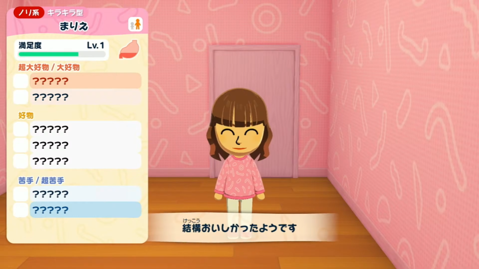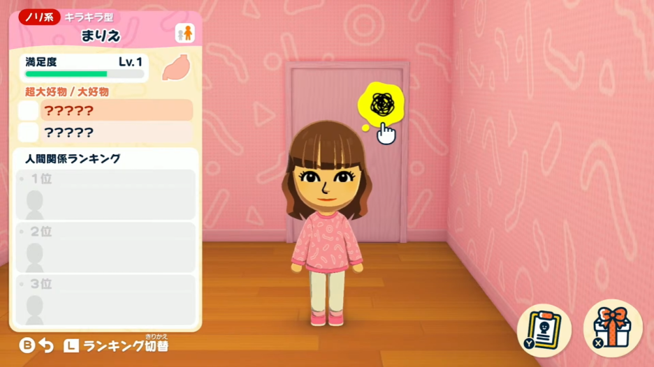 아오 너무 좋네 전작인 아파트에선 솔직히 Mii들 프로필작성할때 성격 다양하게 해도 행동거지나 말투 다 똑같아서 좀 거시기했는데 이젠 캐릭터마다 좀 다르게 느껴질만 할듯